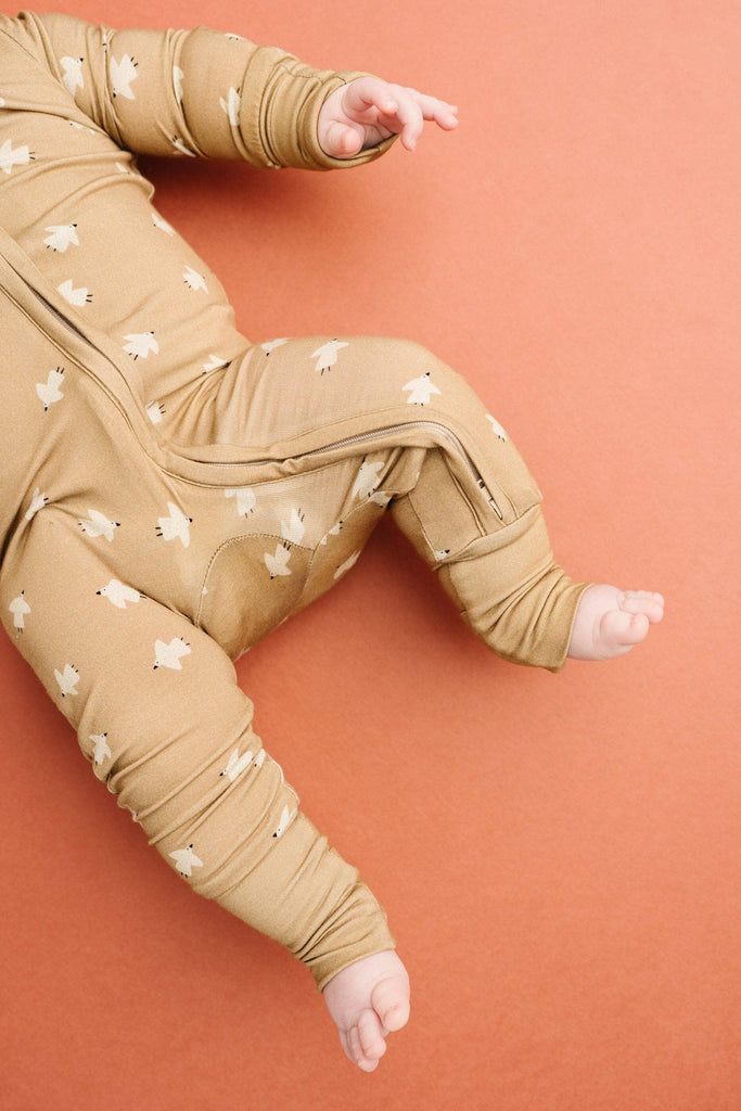 * Buttery soft, lightweight, and breathable: Crafted from premium bamboo fabric for maximum comfort. * Stretchy design: Offers flexibility for your little one's movements. * Fold-over mittens (up to 12-18 months): Keeps tiny hands warm and protected. * Fold-over footies: Ensures cozy feet for extra warmth and protection. * Convenient 2-way zipper: Makes diaper changes quick and hassle-free. * Snug fit: Designed with your baby's safety in mind, offering a secure and cozy feel. * Fabric blend: 95% viscose bamboo, 5% spandex for durability and stretch. * No harmful chemicals: Free from flame retardants and harsh chemicals, ensuring the best for your baby. * Easy care: Machine washable and tumble dry-friendly for everyday convenience.